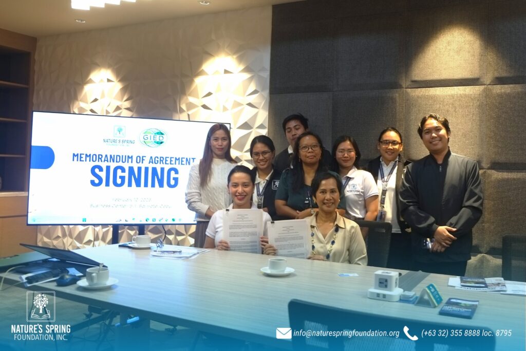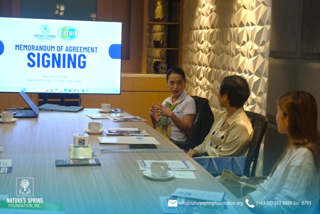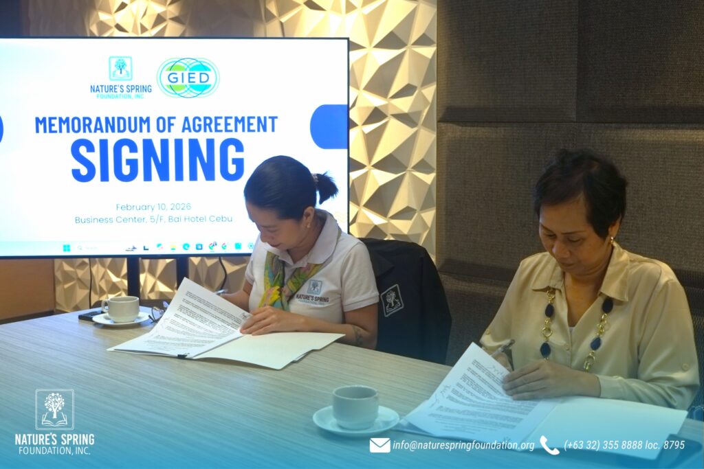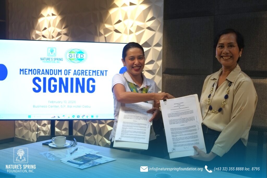Nature’s Spring Foundation marked a significant milestone with the signing of a Memorandum of Agreement with the Global Initiative for Exchange and Development Inc. (GIED) on February 10, 2026, at the Business Center of Bai Hotel Cebu.